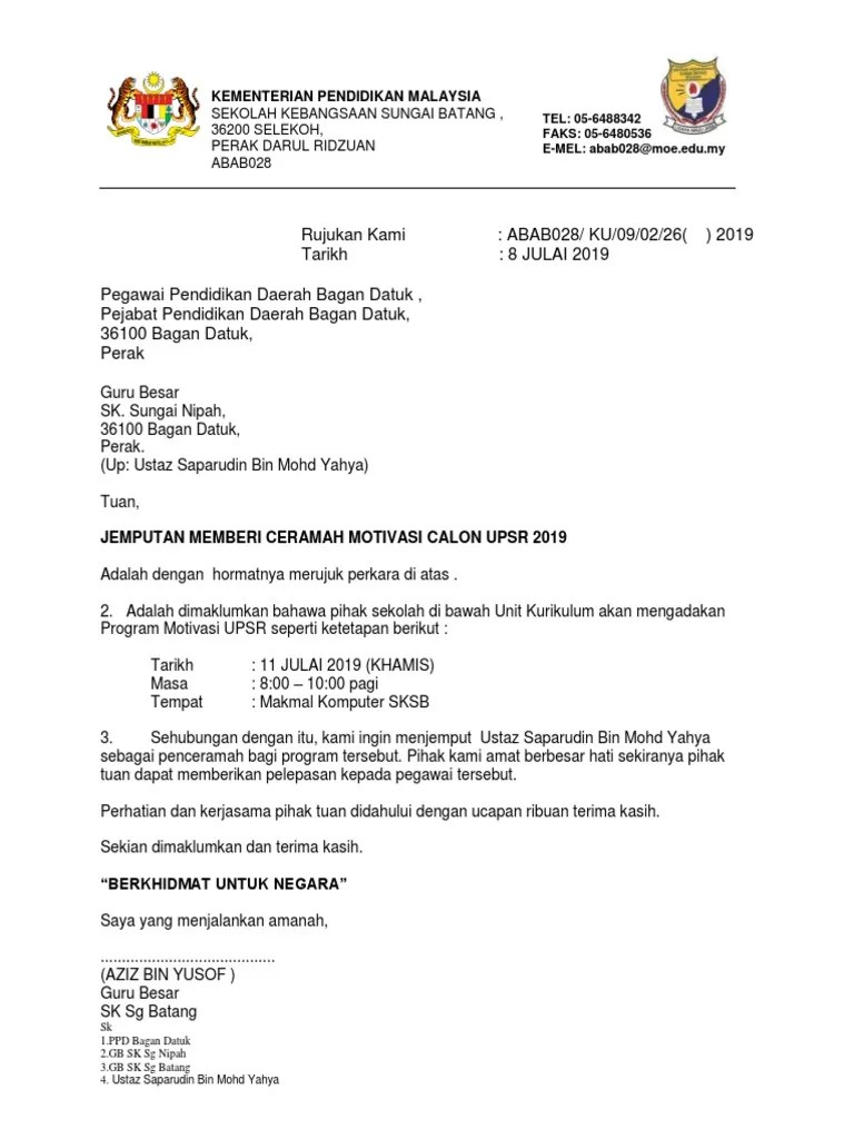 Contoh surat jemputan program motivasi sekolah kebangsaan st. Dengan hormatnya saya merujuk kepada perkara di atas. Kem motivasi upsr sekolah kebangsaan pos legap 2015.